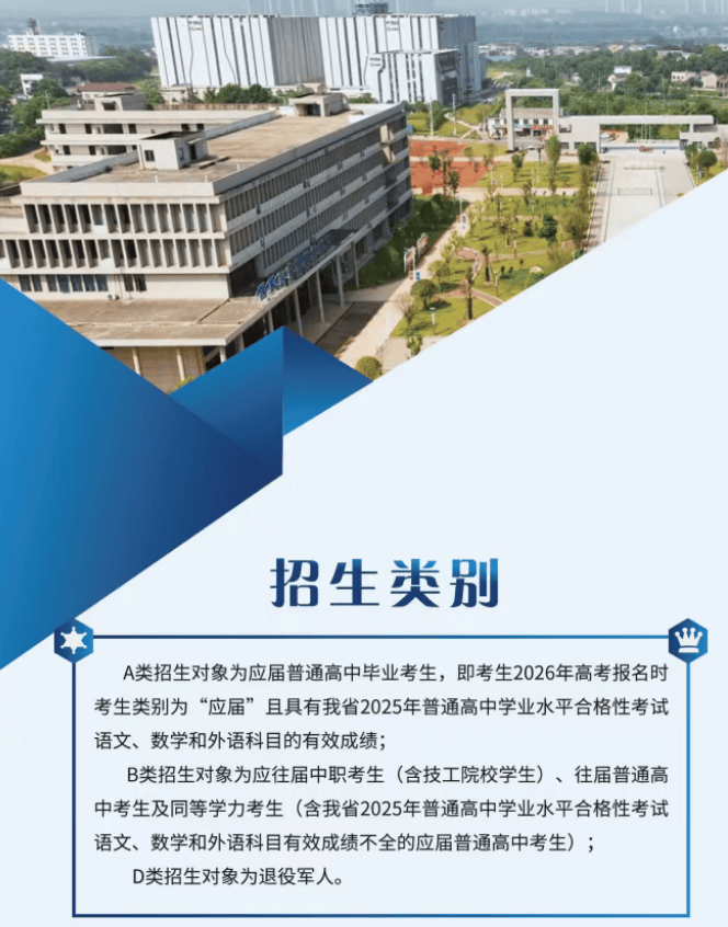 2026年学校单招招生对象明白为合适湖南省2026年通俗高考(含对口招生测验)报名前提并已完成高考报名的人员,未加入高考报名者无法参取单应考试及登科。招生类别分为三类,精准笼盖分歧考生群体:A类面向应届通俗高中结业生,需具备省内2025年通俗高中学业程度及格性测验语文、数学、外语三科无效成就;B类涵盖应往届中职生、技工院校学生、往届普高生及学业程度及格性测验三科成就不全的应届普高生;D类特地面向退役甲士,需提前完成身份审核公示后方可报考。