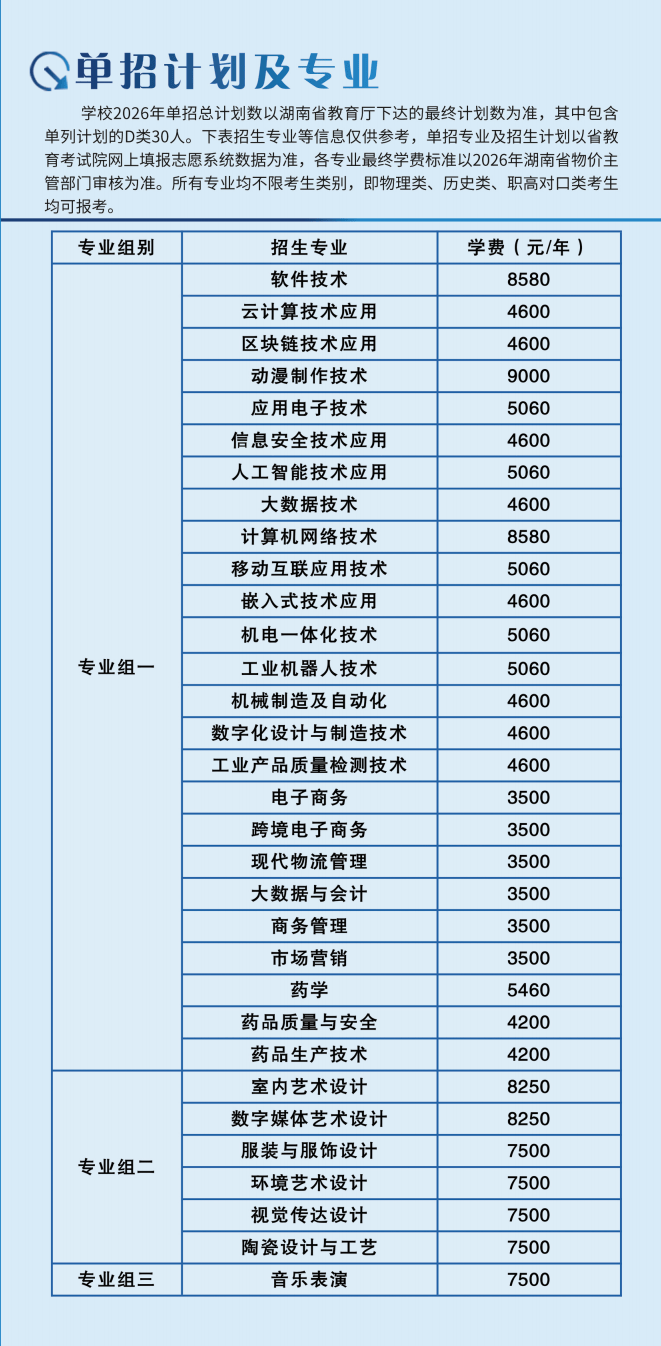 学校采用“文化本质+职业技术”分类测验模式,A类考生以学业程度测验成就替代文化本质测试,B类考生需加入学校组织的文化本质笔试,D类考生免予文化本质测试,三类考生均需加入职业技术笔试,沉点调查职业顺应性取技术潜力。学校“公允、、公开”准绳,实施招生“阳光工程”,单招意愿设一、二意愿,考生可选择一个专业组填报1-6个专业及从命调剂意愿。依托取华为、三一沉工等出名企业的深度合做,专升本登科人数逐年攀升,为学子搭建起技术成才取学历提拔的多元径。