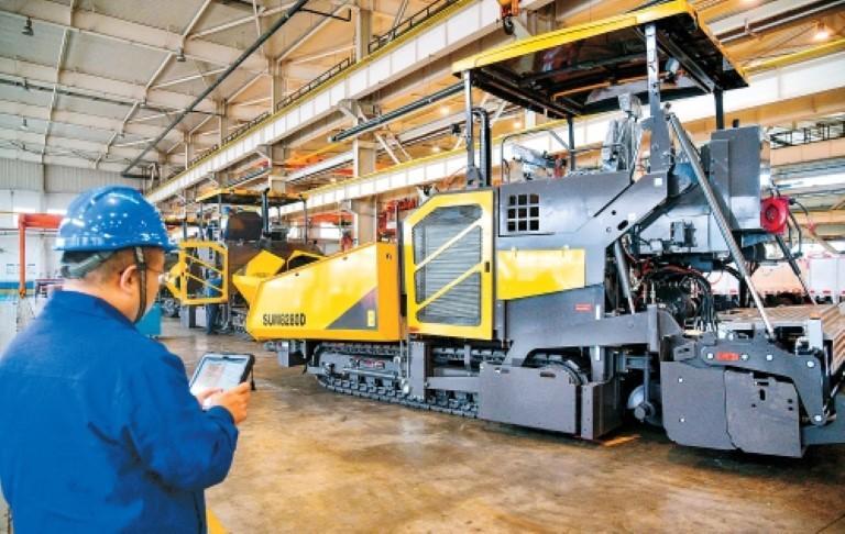 范勖成告诉记者:“对于沥青摊铺机,我们开辟了智能化操做屏幕,不只使操做愈加便利,并且能够利用平板电脑进行近程操做。好比,正在特殊地道里施工时,烟尘大会对人体发生影响,利用近程操做,能够避免对人体的风险。”。