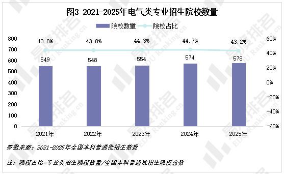 开设电气类专业的院校占比不变正在43%-45%之间。开设电气专业并非易事。需要强大的物理、数学师资、高贵的尝试设备等。较高的准入门槛了大量不具备前提的院校盲目开设此专业。2025年占比回落至43。2%,而此中新增的院校大多不具备开设电气专业的前提。