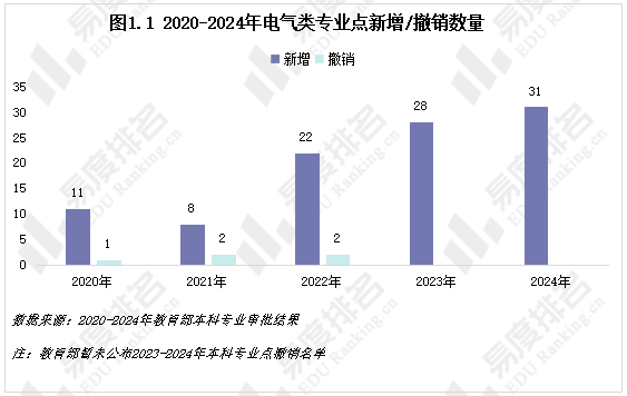 电气类专业的新增并非只正在保守标的目的上的数量叠加,进一步向智能化、消息化、互联化标的目的扶植。保守电气工程及其从动化新增专业点数量最多,电气工程取智能节制、节制手艺深度融合的典型代表,别离新增28、24个专业点。