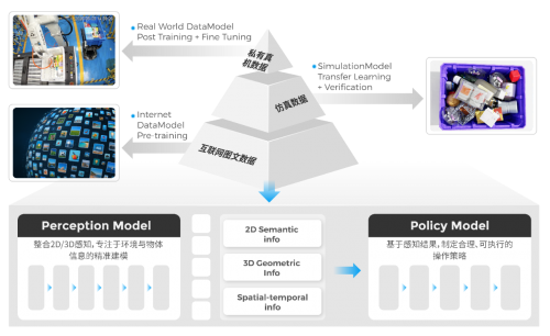 做为通用仓储机械人的“超等大脑”,Geek+ Brain采用“-策略”两段式分层架构,通过模子精准识别物体取消息,策略模子及时生成最优抓取方案取活动轨迹,实现从识别、决策到施行的全链智能挑撰。 Geek+ Brain环绕仓储实正在功课需求,基于万万级数据预锻炼,并连系仿实取行业实正在数据持续优化,建立起笼盖数据出产、模子锻炼、评测取摆设的全链闭环系统。 系统通过实机运转取仿实持续采集仓储场景中的多样商品取操做数据,并借帮大模子加快标注,高效建立锻炼资本;依托海量数据完成基座模子预锻炼,以及通过多模态锻炼数据挖掘实现高效的模子微调,夹杂专家模子反向支持让标注更智能。模子正在投入实正在仓库利用前,曾经过严酷的多条理测试,从互联网数据、仿实数据到实机数据逐级验证其靠得住性取顺应性;最终通过轻量化手艺摆设到各仓库工做坐中,实现AI模子正在复杂仓储中的快速使用取持续进化,构成“越用越智能”的良性轮回,为仓储无人化供给高机能、可复用的抓取取决策能力。