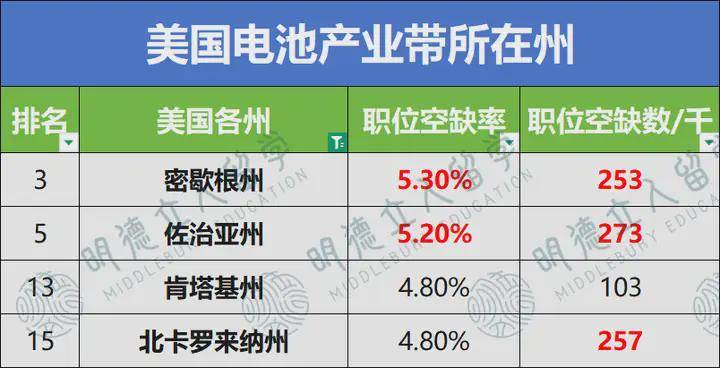 这一制制业走廊正吸引着数十亿美元的电动汽车(EV)及电池财产投资!平均职位空白率都正在5%以上!总岗亭缺口达88。6万!